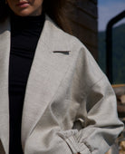 Produkt premium, wykonany z najwyższej jakości wełny merino. Luźny, delikatnie oversize’owy krój petite, zapinana na jeden guzik, guma w talii, guma przy rękawach, na podszewce, wygodna i stylowa